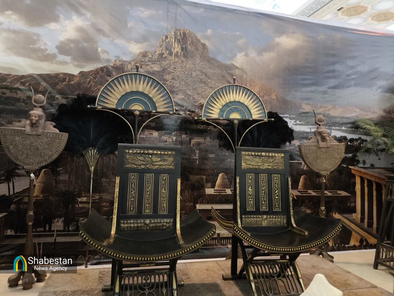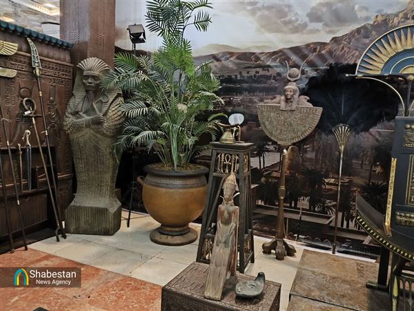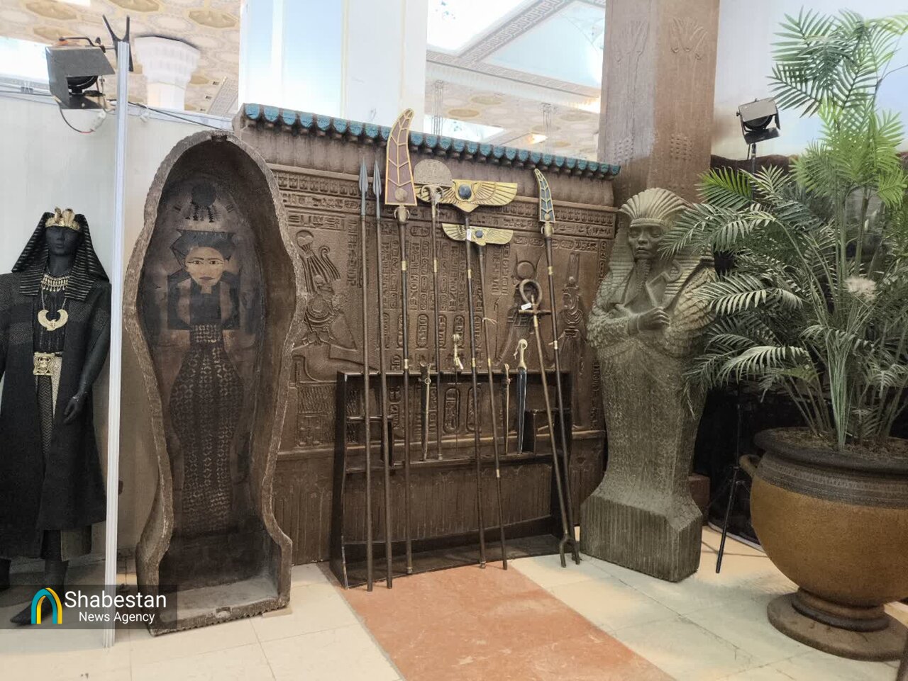 The booth showcases a collection of models and sculptures used in the award-winning Iranian film 'Prophet Moses'.