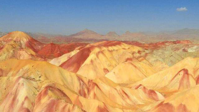 The canvas-like heights with hues that vary from red, brown, green, orange, yellow and white are spread over a land of 70 square kilometers and the highest summit is named Belgheis being 3300 meters above the sea level.
