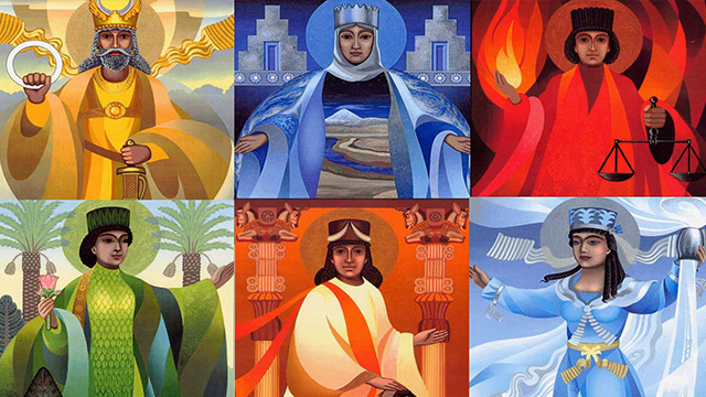 Amesha Spenta are a class of seven divine entities emanating from Ahura Mazda, the highest divinity of the Zoroastrian religion.