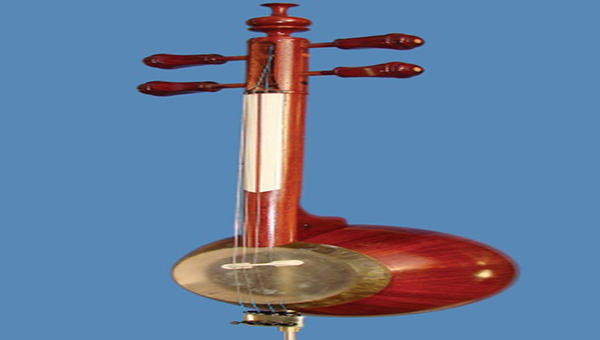 Kamancheh (Persian word for ‘little bow') is a bowed string instrument which resembles a violin in that it is played by drawing a bow across the strings.